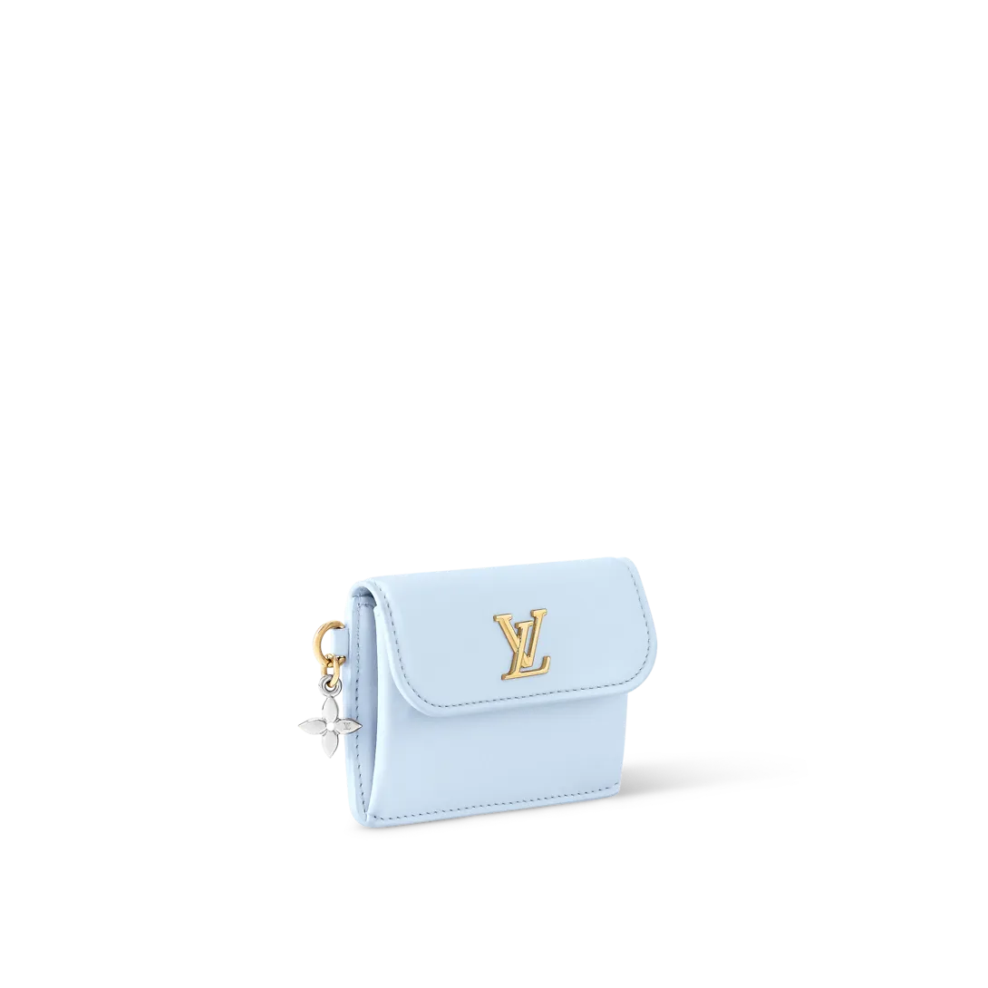 Meet the Tiny Recto Verso Card Holder from the LV Bloom collection. Offered in a vibrant color palette, this elegant accessory is crafted from calfskin and adorned with a new signature Monogram Flower charm in a bi-galvanized metallic finish. It is designed with a pleated construction to maximize space, and includes a large front pocket, plus two card slots at the back.